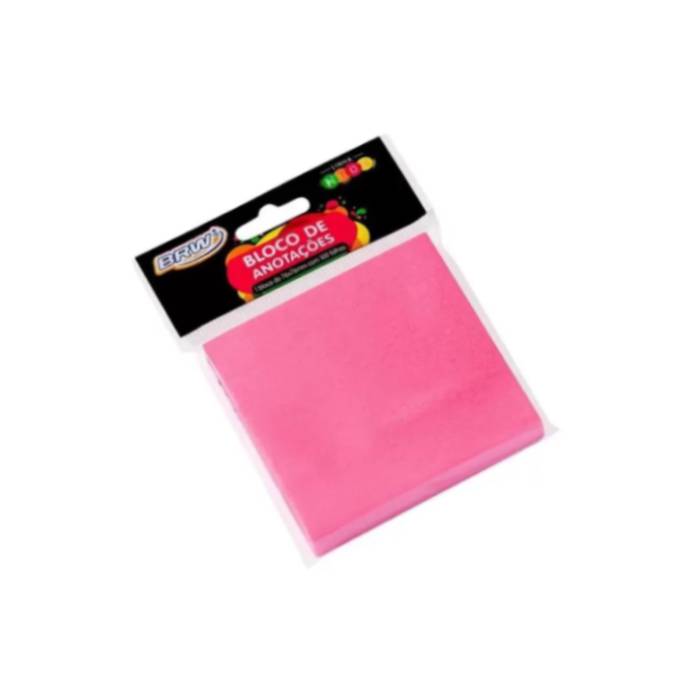 Bloco Adesivo 76mm x 76mm Rosa Neon 100 Folhas BRW BA7673