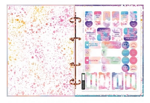 O Caderno Argolado Cartonado Colegial Good Vibes 160 Folhas possui formato compacto, é leve e bastante funcional. Vem com capa dura com detalhe metalizado e parte interna decorada, divisórias, folha adesiva, folhas pautadas e bolsa plástica para guardar trabalhos e anotações.