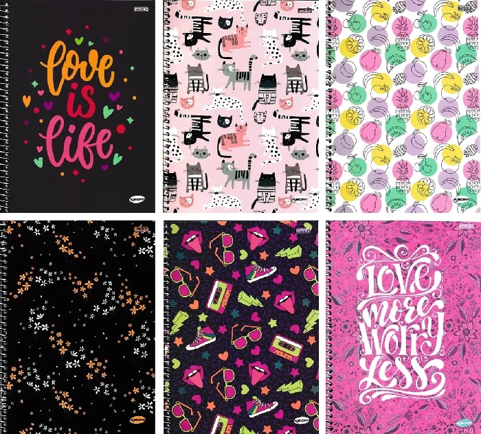 O Caderno Espiral Capa Dura Universitário 10 Matérias KBom Feminino 200 Folhas possui capa dura, folhas pautadas e espiral colorido .