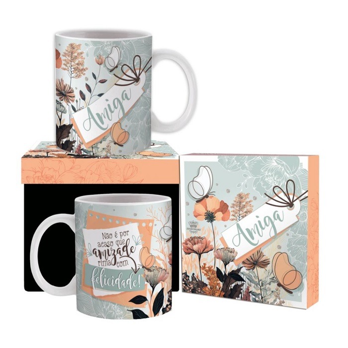 Caneca Cerâmica Não É Por Acaso Que Amizade Rima Com Felicidade Amiga 300ml Disarz CA300