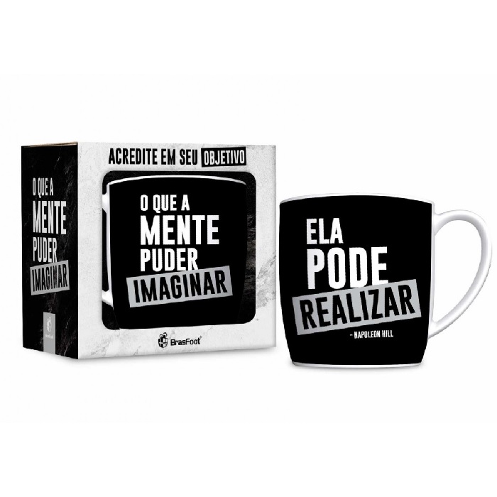 Caneca Porcelana O Que A Mente Puder Imaginar Urban 360 ML Brasfoot