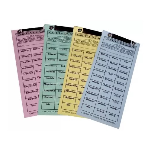 Cartela Para Rifa Com Nomes Unidade – Cores Sortidas