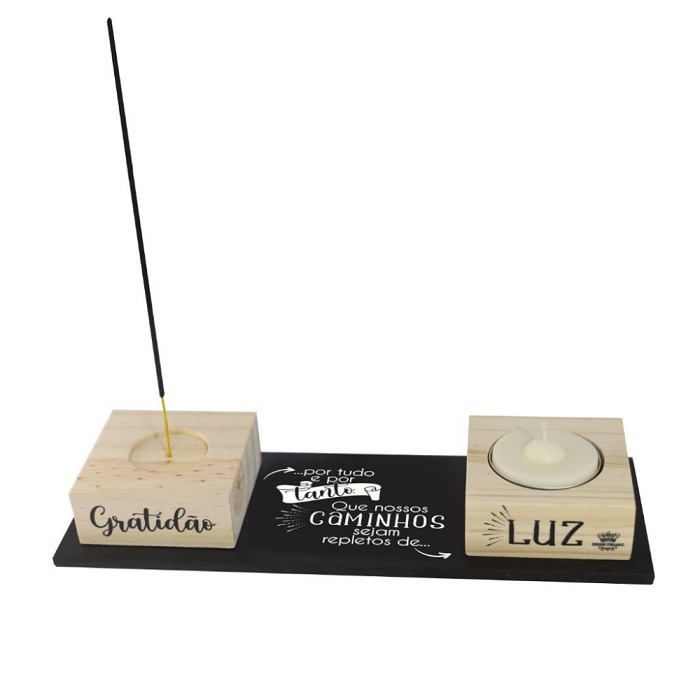 Enfeite Decorativo Com Vela Porta Incenso Gratidão Por Tudo E Por Tanto Que Nossos Caminhos Sejam Repletos De Luz 3,5cmx27,5cmx9,5 C909