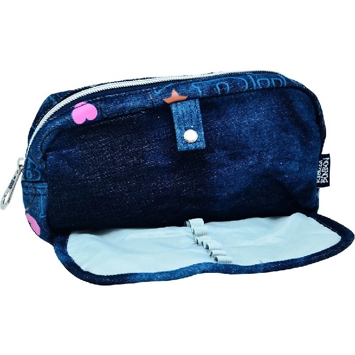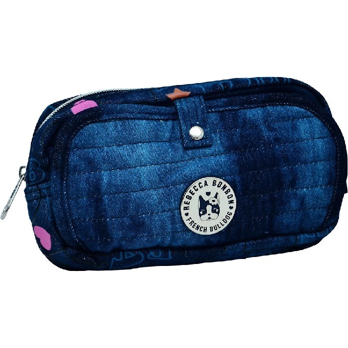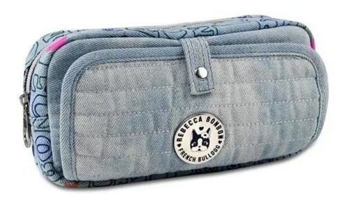 O Estojo Rebecca Bonbon O estojo de jeans Rebecca Bonbon da Clio Style é o acessório indispensável para quem busca um visual despojado e autêntico sem abrir mão da organização. Confeccionado em jeans de alta qualidade com detalhes em bordado, este modelo foi projetado para quem prefere uma organização segmentada, graças às suas duas divisórias independentes. Com o charme icônico da Bulldog Francesa e um acabamento que remete à moda urbana, ele une a durabilidade do material jeans com a sofisticação da linha RB, sendo perfeito para o uso escolar, universitário ou até mesmo como nécessaire.