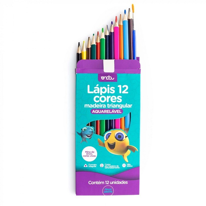 – Contém 12 lápis de cor mais pincel para aquarela!