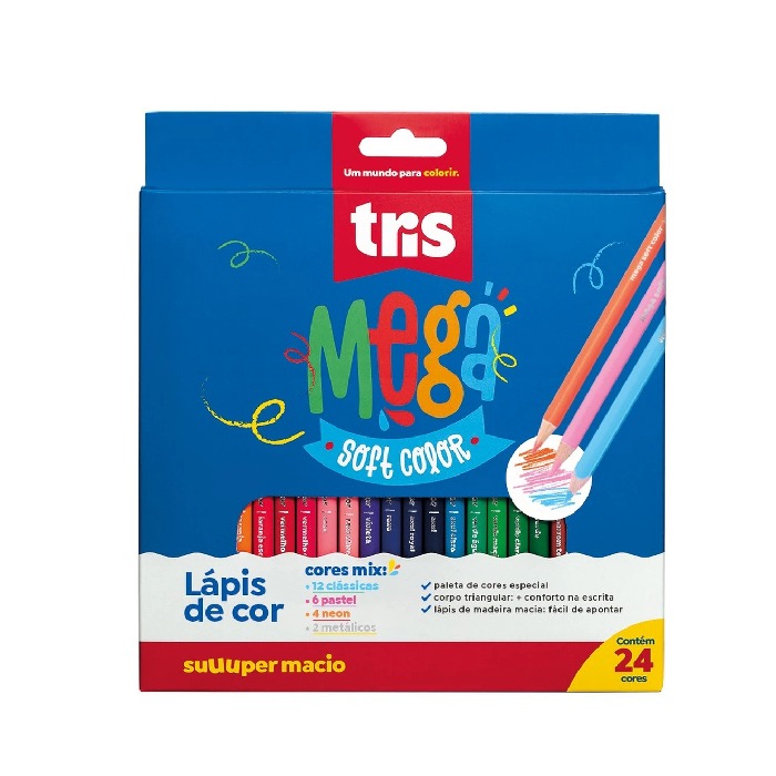 Lápis De Cor Tris 24 Cores Mega Soft Mix