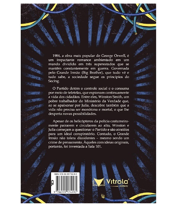 1984, a obra mais popular de George Orwell, é um impactante romance ambientado em um mundo dividido em três superestados que se mantêm constantemente em guerra. Governada pelo Grande Irmão (Big Brother), que tudo vê e tudo sabe, a sociedade segue os princípios do Socing. O Partido detém o controle social e o consuma por meio de teletelas, que espionam continuamente a vida dos cidadãos. Entre eles, Winston Smith, um pobre trabalhador do Ministério da Verdade que, ao descobrir o amor por Julia, descobre também que a vida não precisa ser monótona e mortal, o que lhe desperta novas possibilidades.