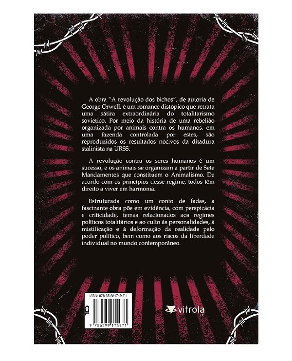 A obra “A revolução dos bichos”, de autoria de George Orwell, é um romance distópico que retrata uma sátira extraordinária do totalitarismo soviético. Por meio da história de uma rebelião organizada por animais contra os humanos, em uma fazenda controlada por estes, são reproduzidos os resultados nocivos da ditadura stalinista na URSS.
