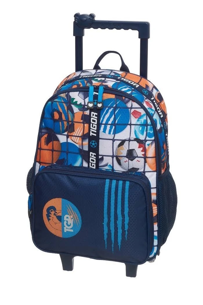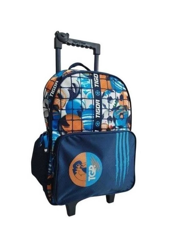 Mala com Rodas, é produzida em jacquard de poliéster resistente e estampado. Compartimento principal amplo, 2 bolsos laterais em mesh com elástico. Zíper com puxadores personalizados. Carrinho em metal. Com a nova Linha Escolar Tigor T.Tigre Craque, seu campeão ficará uma ferinha estilosa durante as aulas.