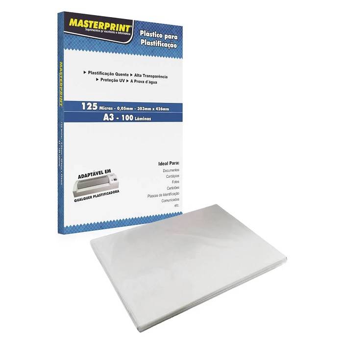 Plástico Plastificação Polaseal A3 303x426mm 0.05mm Masterprint 10 Unidades 329010002